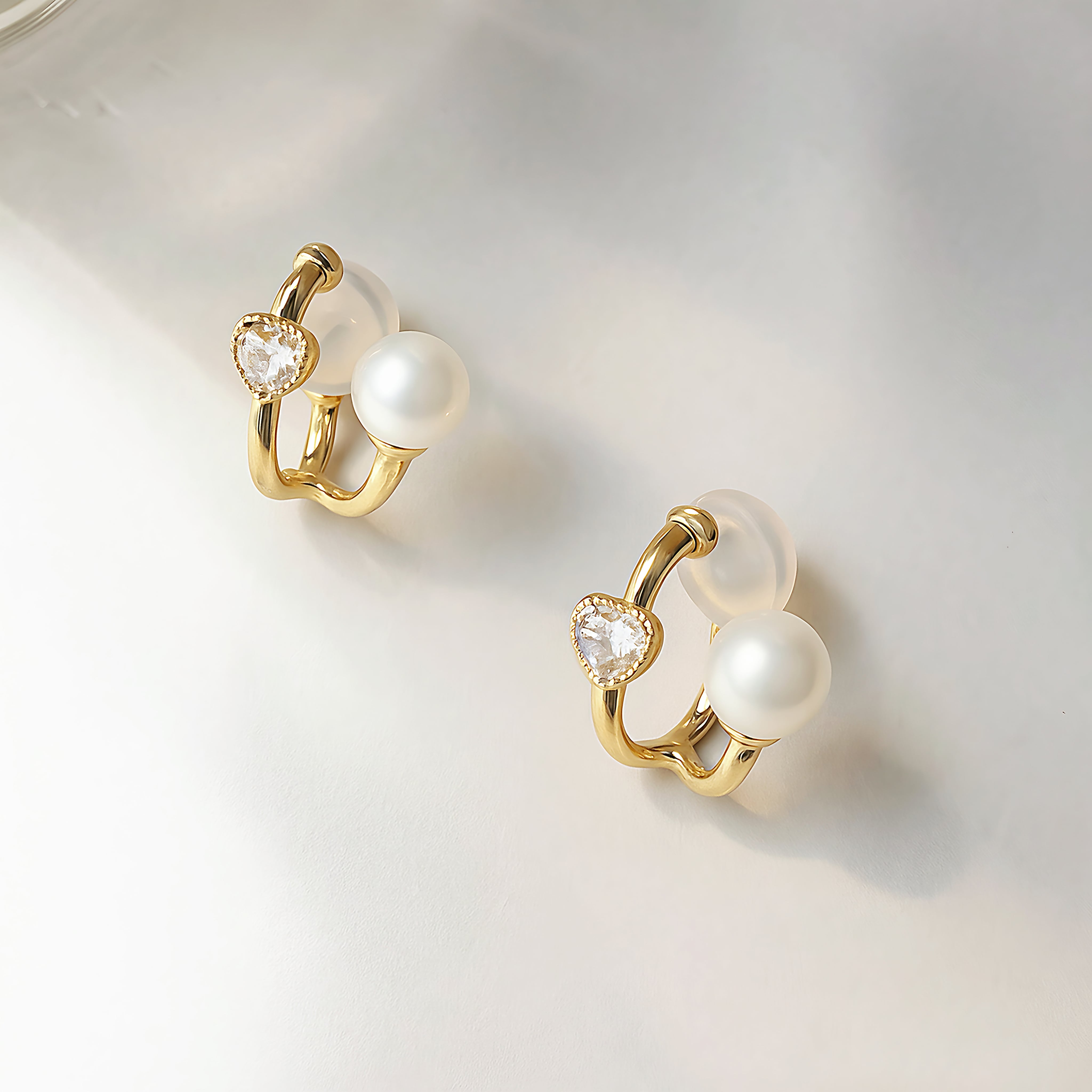 ハート♡×ゴールドの新作です♡ シンプルで上品なノンホールイヤリング。 大人のゴールドと女性らしいコットンパールのシンプルな組み合わせ。 とっても使いやすいです(′ᴗ‵) シンプルながらも、大人可愛さを ファッションに取り入れてみて くださいね。 ■カラー ゴールド ■材质■ ジルコニア クリスタルパール 金属部分:メッキ(ニッケルフリー) ※金属アレルギー等肌に合わない方はご注意ください ※表面に細かい傷がある場合がございますが不良品ではございませんのでご了承下さい --------------------------------------------------------------------- ▼・・・・・・・・・・▼ 1点でも送料無料! 今だけの特別キャンペーン❤ 1点からでも送料無料です! ▲・・・・・・・・・・▲ ◆独自の構造で、やさしくフィット◆ hugmiのイヤリングは、市販ではあまり見かけない独自の構造。 やわらかくしなる調整可能な金属ワイヤーと、 シリコンのやさしい摩擦力によって、耳たぶにふんわりフィットします。 きつい・ゆるいと感じたときは、お好みにあわせてご自身で幅の調整が可能です。 「挟む」のではなく「支える」構造だから、 耳たぶの厚みに自然になじみ、 長時間つけても痛くなりにくく、外れにくいのが特長です。 ***詳しい装着方法・調節方法をご案内しております*** https://hugmi.base.ec/p/00001 --------------------------------------------------------------------- ◆ こんな方におすすめ◆ ・耳たぶが厚く、イヤリングで痛くなりやすい方 ・金属アレルギーでおしゃれをあきらめていた方 ・市販のイヤリングは金具が目立つのが気になる方 ・耳たぶが薄く、すぐ外れてしまうのが不安な方 ◎耳たぶ以外にも軟骨部分などお好みの場所にお使いいただけます ◎ピアスホールが無くてもOK!挟むだけのの簡単装着! ◎耳たぶの裏側に当たるシリコンゴムはとても小さいので 悪目立ちせずスッキリお使いいただけます。 ◎小ぶりサイズなのでマスクやマフラーなどに引っかかりにくいのも --------------------------------------------------------------------- ◆ 保証・修理について ◆ 90日以内は 修理無料 お買い上け日から3ヶ月以内の修理は、自損以外の理由に限 り無償で行わせていただきます。 保証期間を過ぎた場合は有償となりますのでご了承ください。 修理ご依頼の際はhugmi公式LINEよりご連絡ください。