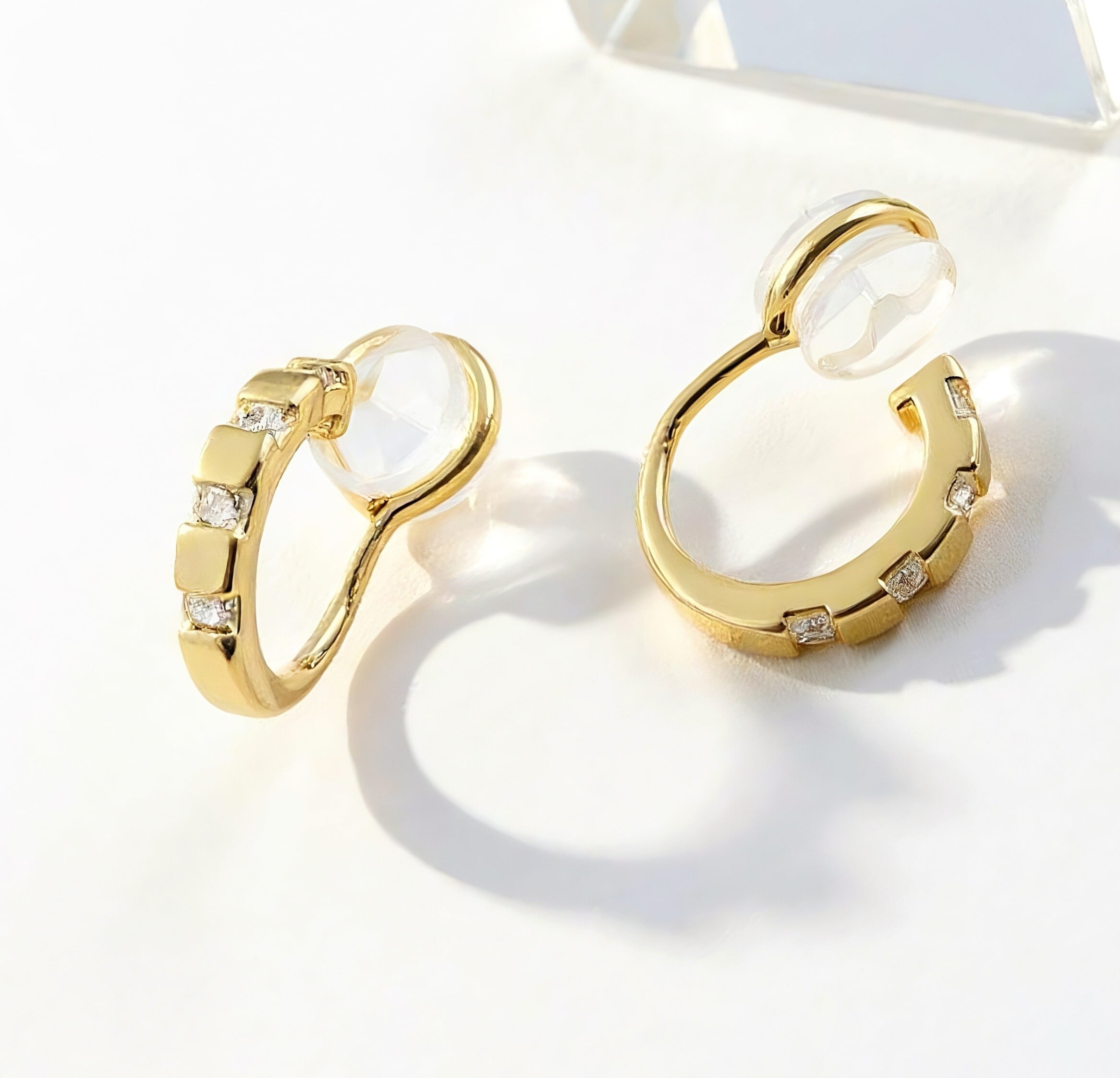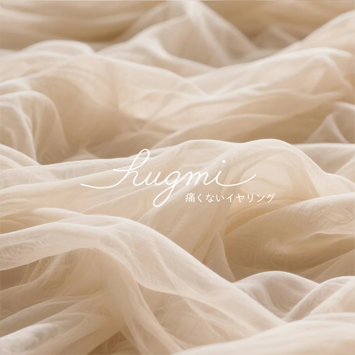 hugmiのイヤリングは、やわらかい“記憶ワイヤー”とシリコンパッドで耳たぶにやさしくフィット。