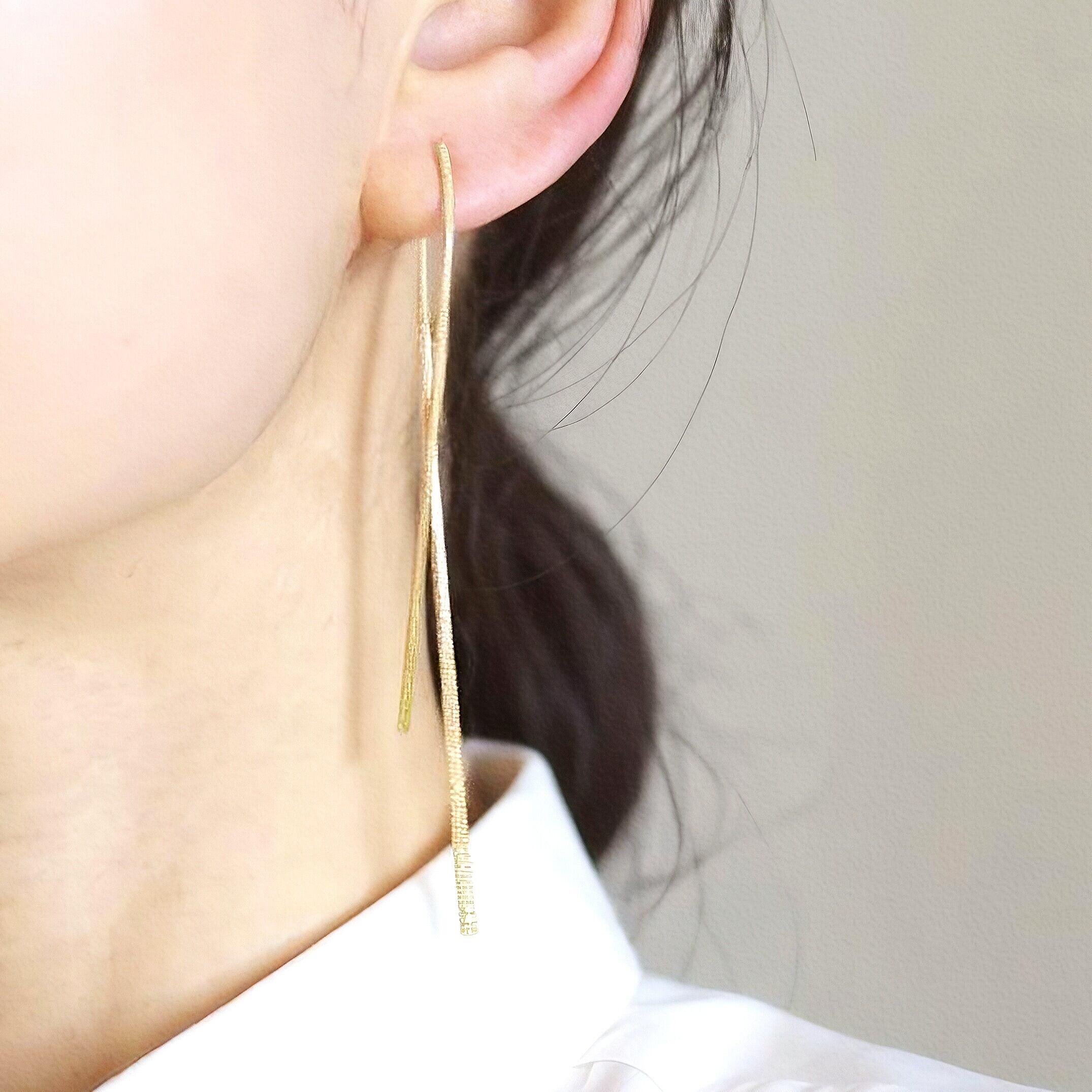 耳元でしなやかに揺れる、存在感のあるイヤリング。
