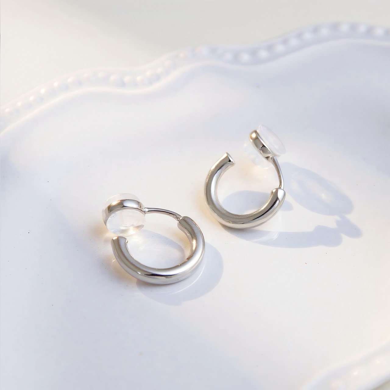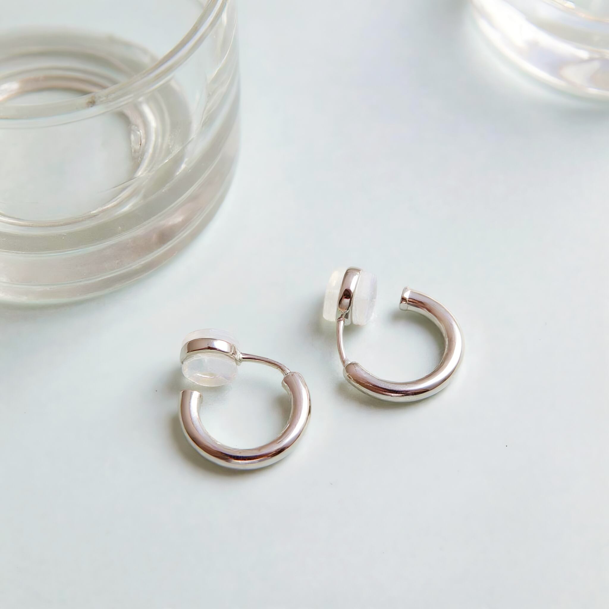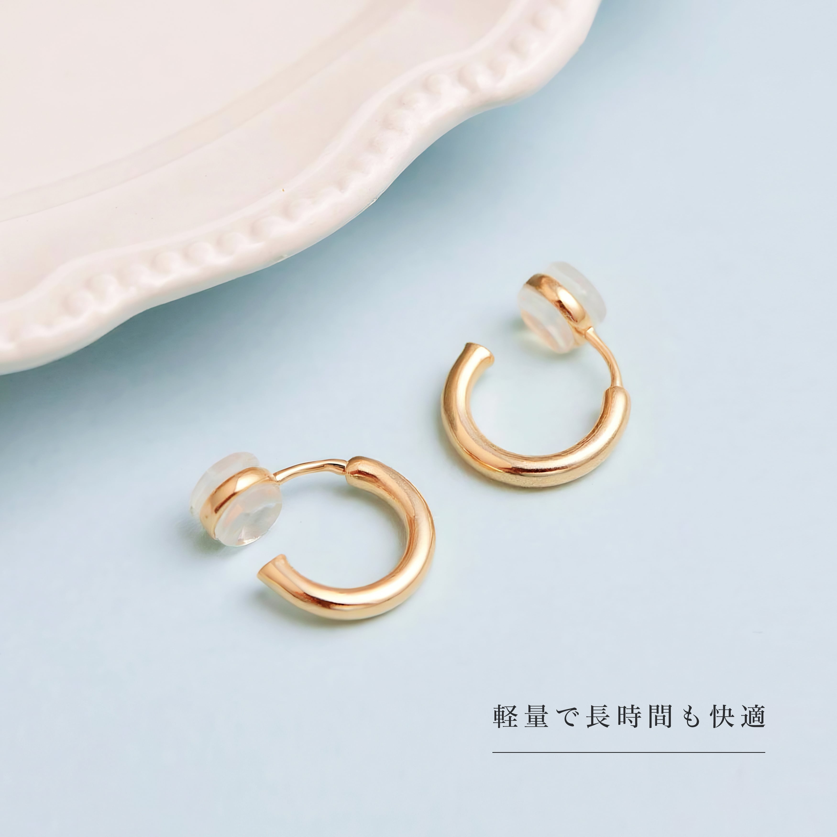 シリコンのやさしい摩擦力によって、耳たぶにふんわりフィットします。