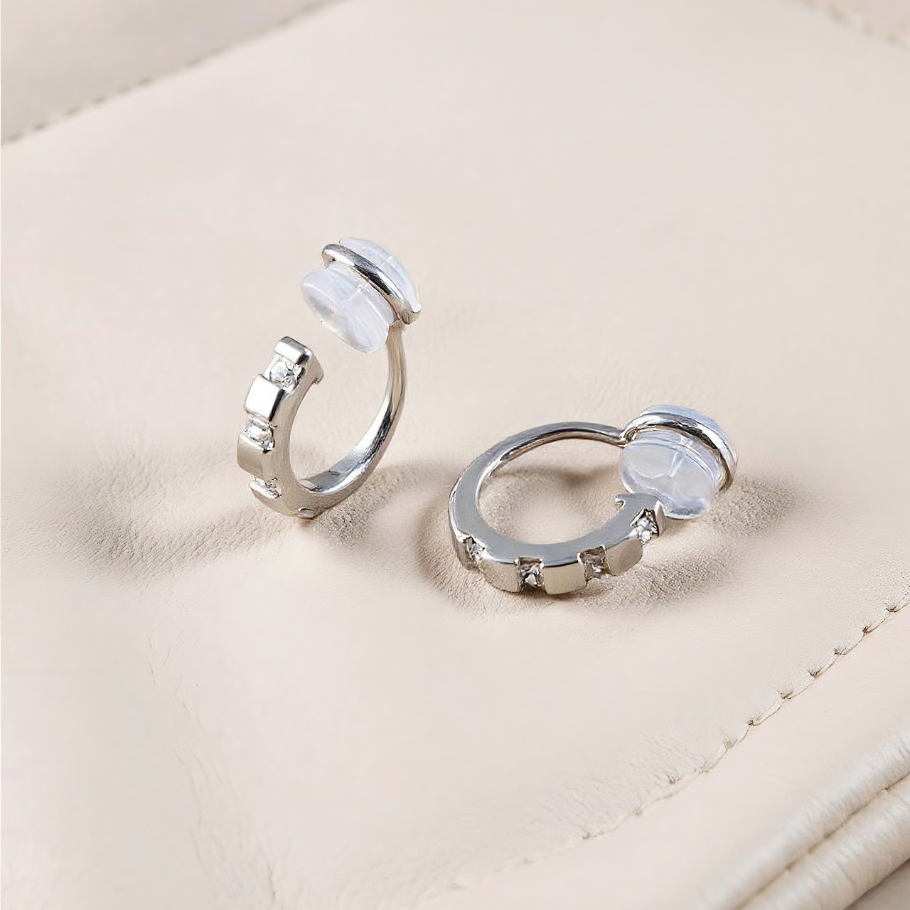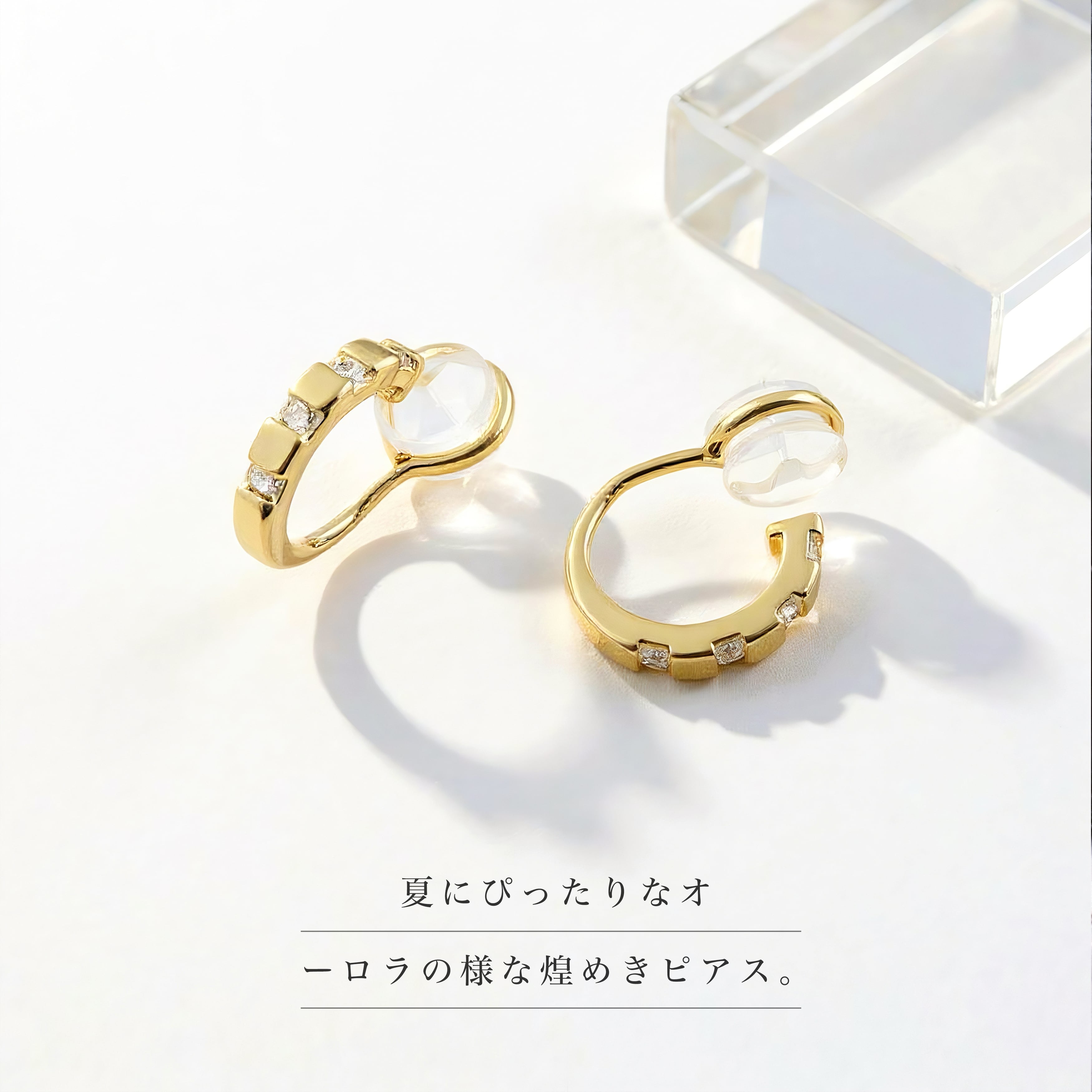 シリコンのやさしい摩擦力によって、耳たぶにふんわりフィットします。